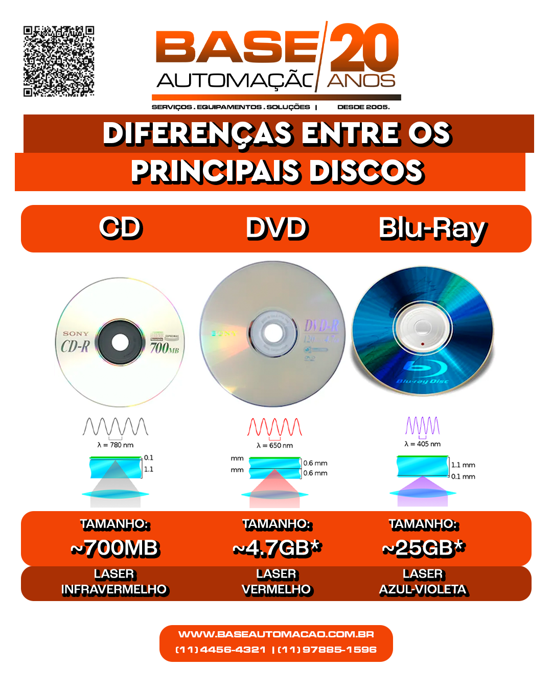 📈 Evolução em números: Do CD ao Blu-ray de dupla camada, a capacidade cresceu ~70 vezes (de 700 MB para 50 GB).